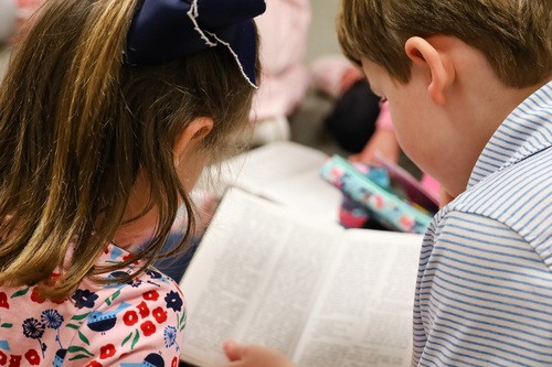During worship services, preschoolers enjoy a fun, safe environment where they can play, build friendships, and feel at home. From 9:45–10:45am, they gather for a special time to hear God's Word within an age-appropriate setting.
